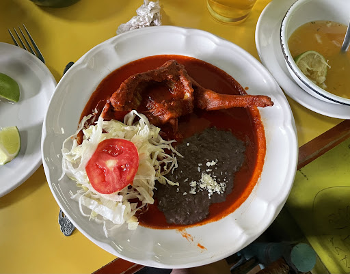It looked interesting from the outside and the inside proved to be just as interesting kind of a rustic decor and get there early because they do close around 7 they are not open late. Mostly traditional food I had a beef dish that was served with some refried beans guacamole that was delicious although a little spicy and some refried beans and a small very small salad. It came with choice of soup or spaghetti. Yeah it seems strange to me to to get spaghetti in Mexico. I read a couple of negative reviews and I cannot agree with them they did a good job the service was good and pleasant...