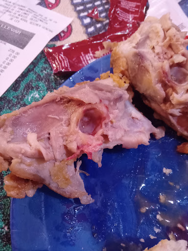 Muy pocas veces crítico la comida, y en esta ocasión por la pésima calidad de la comida, el pollo se ve que ya es merma, identificando las piezas hay diferencias en la frescura, unas piernas que son bastante decentes, pero : muslos, alas, guacales; se aprecia que tienen más de los 8 días de refrigeración que marca los estándares de seguridad alimentaria, comparto fotos de la pierna en muy buenas condiciones y un muslo el deprorable aspecto sabor y condiciones, recién servido. Este restaurant tiene que ser visitado por SEGURIDAD ALIMENTARIA URGENTEMENTE. Las instalaciones están por más sucias! Y lo que es más importante el pollo en pésimas condiciones, si fuera auditor de seguridad alimentaria cerraba enseguida y clausuraba el lugar! Solo miren el pollo estilo "cruji" una zona oscura demora perdida de frescura de más.de 10 días. La pierna se nota de buena textura, color correcto y el sabor es el que corresponde de la receta "secreta", solo está última es la que aprueba el estándar las demás piezas estaban igual que el...
