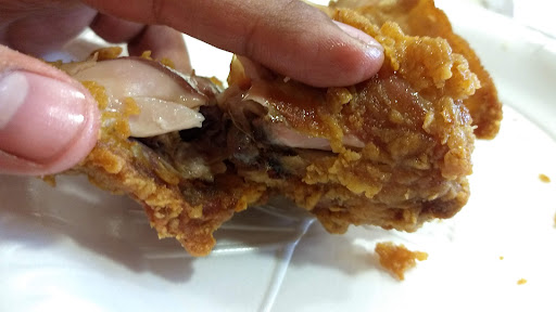 Muy pocas veces crítico la comida, y en esta ocasión por la pésima calidad de la comida, el pollo se ve que ya es merma, identificando las piezas hay diferencias en la frescura, unas piernas que son bastante decentes, pero : muslos, alas, guacales; se aprecia que tienen más de los 8 días de refrigeración que marca los estándares de seguridad alimentaria, comparto fotos de la pierna en muy buenas condiciones y un muslo el deprorable aspecto sabor y condiciones, recién servido. Este restaurant tiene que ser visitado por SEGURIDAD ALIMENTARIA URGENTEMENTE. Las instalaciones están por más sucias! Y lo que es más importante el pollo en pésimas condiciones, si fuera auditor de seguridad alimentaria cerraba enseguida y clausuraba el lugar! Solo miren el pollo estilo "cruji" una zona oscura demora perdida de frescura de más.de 10 días. La pierna se nota de buena textura, color correcto y el sabor es el que corresponde de la receta "secreta", solo está última es la que aprueba el estándar las demás piezas estaban igual que el...