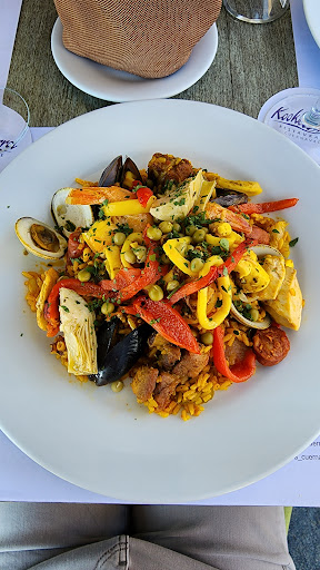 Comida: Pedimos varios Platillos: Paella, muy bien servida, sabor excepcional, tiene alcachofas, pulpo (yo no soy muy fan del pulpo pero el punto en que hicieron la cocción fue genial), camarón, almejas, pollo, cerdo, salchicha, tocino en cuadritos muy pequeños que la hacen un tanto grasosa pero no molesta, entre otros ingredientes, la porción es generosa para una persona, incluye una copa de vino de la casa, muy rico para acompañarla y muy bien servida. También pedimos ensalada, costillas de cerdo super ricas y ravioles con cangrejo y camarón, todo realmente rico y en muy buenas porciones. De bebida pedimos una jarra de clericot, el sabor era prácticamente nada a vino, quizá muy diluido por exceso de hielo. Los panecitos de entrada son deliciosos.