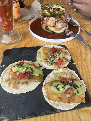 Primera vez que visitamos, está acorde al precio. El lugar es pequeño a mi percepción, lo había visto en fotos y siempre pensé que era mucho más grande, incluso creí que eran dos pisos, pero no, son pocas mesas y en fin de semana a la hora de la comida está lleno. El servicio se me hizo bueno, eficiente ya que todos los meseros te atienden y todos fueron amables, cualquiera pasaba y te tomaba la orden, sólo que eso igual se prestaba a qué seguido confundían órdenes entre las mesas. La comida estuvo bien en general, aunque los tacos de pescado iban algo fríos. Nada de camarones ni mariscos premium por supuesto. Lo que más nos gustó fueron los camarones empanizados y el aguachile negro, de lo cual fue lo que repetimos prácticamente. Las bebidas son aparte y el costo no me pareció excesivo. Sí podría regresar, pero no pronto, no es la opción que elegiría cuando piense...