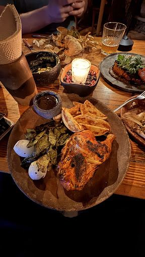 This is a really cool place for a late evening meal, candlelit dinner in a cozy stone dining room, open kitchen, and the flavors of Mexico past and present combined. Be sure to pay tribute to the gods of maize, and order some corn! The dishes are served on handmade clay plates and bowls, roasted veggies and delicious treasures wrapped in corn husks, artesanal y domestic cerveza, and a nice curated tasting of mezcals to relax, digest, and take it all in. I recommend sharing appetizers and your main dishes amongst the table to really sample. Service was great, friendly vibes to allow practicing your espanol, and the atmosphere was like a ancient Mexican oasis. We decided to come here on a wim, so it was really good luck for us!...