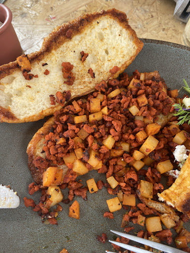 El lugar es muy bonito y bien ambientado. El café me pareció muy rico. La comida me pareció de verdad pésima. Pedí un sándwich de portobello que venía en un bollo de hamburguesa aplastado y no muy fresco porque se desmoronaba. El portobello sin nada de sazón o sal. Se supone que venía con un hummus, pero creo que tenía muy poco porque casi no se notó. Venía con una ensalada con aguacate super verde. Le comenté a la mesera y me dijo que el aguacate estaba bien. Medio me resolvieron dándome un aguacate un poco mejor y las cebollas asadas que en un inicio no tenía el sándwich. Me ofrecieron volver a prepararlo, pero yo ya no quise, porque tenía hambre. A mi parecer la calidad de los alimentos no vale lo que te cobran...comes mejor en Vips. Su modo de que tienen que ir a la barra a pedir y pagar cada vez que quieres algo no me encanta. No lo recomiendo y no volvería.