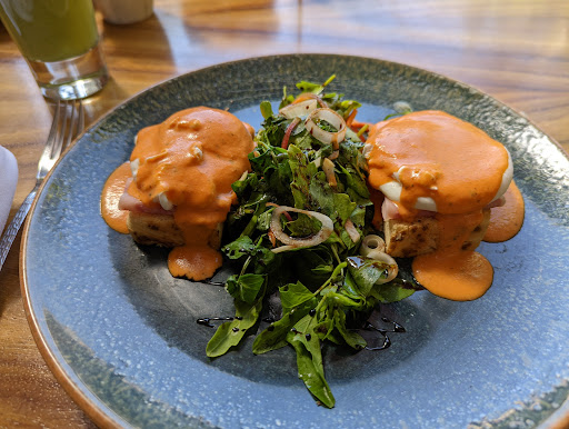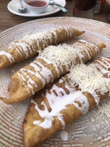 Es la primera vez que lo visitamos. Un lugar muy agradable en una colonia exclusiva de Cuernavaca. Es un lugar de autor, con platillos elegantemente presentados. El menú del desayuno cuesta $240.00 pesos (12dls) (no incluye el servicio). El paquete incluye jugo del día o fruta, pan de la casa, café y un guisado principal. El jugo del día era de piña con guayaba y yerbabuena, muy rico, totalmente natural y sin azúcar. El pan también estaba muy bueno, había de zanahoria, de plátano, cruasán y chocolatin. De platillo principal pedimos pastel azteca (que no era el mejor de sabor aunque estaba bueno). Yo pedí los huevos “raíces”, que son dos huevos estrellados sobre tortilla hecha a mano, bañados de mole de la casa y con un poco de queso suave de cabra y crema. Estos sí estaban deliciosos. La verdad, por todo esto, el precio es bastante adecuado. Punto y a parte el servicio del personal es muy bueno y rápido (sólo hubo un detalle, se olvidaron de traer los jugos y trajeron primero el guisado, pero nada grave, de lo pedimos a otro encargado y nos los trajo de inmediato. El encargado de la puerta, quien te recibe (ignoro si es uno de los dueños) fue muy amable con nosotros todo el tiempo. El ambiente es muy agradable y moderno, con jardines, plantas, salones privados ¡y hasta un estanque con hermosas tortugas! En el desayuno nos toco música en vivo, agradable y a buen volumen. Los baños, muy limpios y también de diseño. Por todo esto le doy diez de calificación. ¡Ah! Por cierto, también es...
