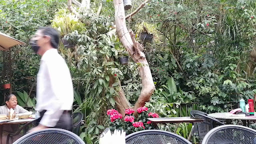 Axitla es una maravilla porque no escuchas el ruido de la calle, entras en un jardín muy grande que amortigua el ruido. El restaurante es una maravilla pues parece un oassis.