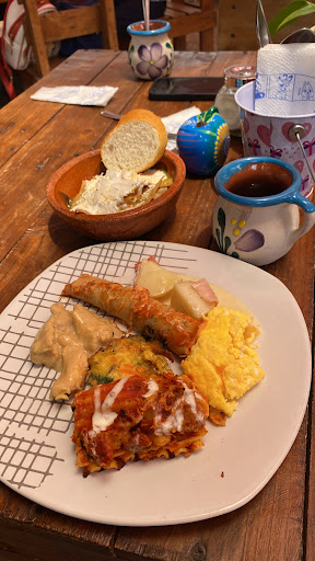 Read moreSólo sirven buffet, desde que llegas te dan gel para manos, y te explican que no debe haber desperdicio o el costo es mayor. No te sirves de forma personal, una persona te sirve la cantidad que elijas y el platillo que elijas, no tienes contacto con los alimentos que están mostrando pero el sabor en general es bueno y muy diverso. El lugar está abierto con muchas mesas y hay diversos platillos, sopas, postres y bebidas sin alcohol pero ensalada sólo una. Todo se ve muy casero y de buen sabor particularmente los chilaquiles son muy ricos. Ellos te recogen platos y puedes escoger más guisados las veces que quieras pero el plato debe quedar limpio para evitar pagar más. El café está malísimo, quemado. Es lo único malo y que sólo reciban efectivo me parece poco práctico o con transferencia previa. Volvería, tal vez. Es muy familiar aunque es terracería pero el ambiente agradable. Música a buen volumen, agradable. Tiene estacionamiento amplio y al interior, uno lo estaciona aunque no es techado. Vale la...