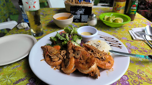 Pedí dos cosas , el menú botanero y unos camarones al mojo de Ajo; del menú: Un caldo de camarón justo de espesor y sabor, se agradece tenga un camarón con cabeza, cosa que da sabor, seguido de un trío que consiste en un sopecito doradito pasado por manteca con salsa verde y un tipo queso tipo cotija ,me recuerda a las picadas de Vz, posterior un arroz tipo paella ,eso sí ,solo el arroz , tambien una quesadilla frita rellena de un guiso de jitomate con pescado, bien por el sabor de mar de la misma, la salsa de chile guajillo y chile de arbol con jitomate al centro de la mesa le hace bien, me gustó. Sabor ahumado. Después la aparición de tres ceviches uno estilo Acapulco que estaba bien, carne tártara que es más picadillo curado con limón y aceitunas y cuadritos de queso panela a este le falto de sabor , y otro ceviche con zanahoria sazonado con aceite de oliva normal diría, pero le faltó un poco de sal. Los ceviches más o menos. Finaliza este menú económico con una mojarrita frita, y digo frita porque hasta la cabeza te comes, me gustó mucho, está última estaba bien hecha y con la salsa y su limón 😋 muy buena. Los camarones al mojo de Ajo a mi gusto son buenos solo recomiendo sean más dorados sin embargo se corre el riesgo de que la carne no tenga jugo, te lo sirven con arroz y ensalada, el aderezo no me gustó sabía más dulce que agridulce...como creo era la idea, así que le puse solo aceite de oliva el cuál tienes que pedir , con limón y sal. Estaban buenos.