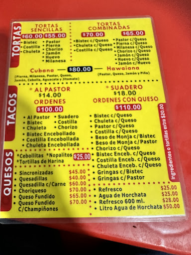 Read moreLa comida bien preparada , el menú cuenta con todo lo que esperas de una taquería ; en los tacos además de "pastor" y "suadero" los fines de semana ofrecen tacos de "machitos"ó "tripas" . Tortas , gringas , tacos trompo , queso fundido , frijoles charros ... todo rico .