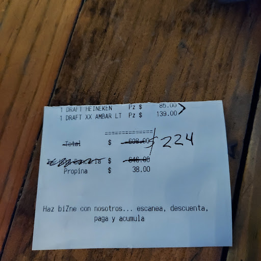 1- Alguien en la mesa pidió una ensalada, la mesera le dijo "normalmente va con pollo, la quieres así?" pero no mencionó que eso era con un costo adicional, por lo que nos estaban cobrando $49 extra. No alegamos al respecto porque aunque consideramos que la mesera debió advertir que tendría un cargo adicional, en el menú no decía que llevaba pollo.