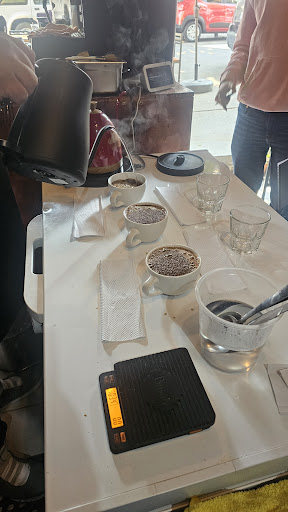 Lo que quedó en el tintero: Desde la entrada, se respira ese intenso a aroma a café de calidad. Dentro hay muy pocas mesas, pero eso resalta la característica primordial que le encontré: su apacibilidad. Solo pedí un espresso para pasar una hora, pero me atendieron tan bien que, sin pedirlo, me aproximaron un chaser de agua natural; algo que solo las cafeterías de gran prestigio observan y mantienen. Muchas felicitaciones ahí. No pedí alimentos porque venía llenísimo, pero las vitrinas lucían muchos panes que se antojaban. Tendré que venir en otra ocasión de seguro. Precios de espanto (en el...