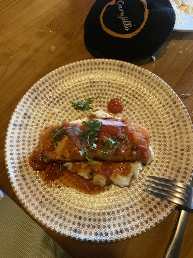 El día de hoy 29 de junio 2025 Acudimos Mi esposo, nuestro bebé de 2 años y yo que tengo 4 meses de embarazo, El recibimiento de la Hostess Recepcionista lo que sea PÉSIMO ni siquiera nos dio el saludo al llegar y se mantuvo callada a que nosotros pidiéramos mesa y con una cara de pocos amigos se levanto porque estaba sentada con el celular en la mano y fue que le pedimos mesa para 3 y no nos quería dejar pasar la carreola donde venía mi bebé nos señalo la mesa y se fue sin decir nada más! En relación a la comida todo excelente Buen sabor y buena presentación al igual que las bebidas Solo el Famoso “CARAJILLO” es muy X para ser la bebida del nombre del restaurante deberían de mejorar su preparación me causó gracia como lo preparo en 4 segundos lo hago mejor en mi casa. La mesera una chica morena de baja estatura y cara de que no me pidas nada también su POCA atención dejo mucho que Desear 0 servicial teníamos que andarla buscando para pedirle algo JAMÁS nos ofreció una Periquera para sentar al Bebé y jamás trajo a la mesa la carta de postres que le pedimos 2 veces! La verdad solo se le dejo el 10% pero sin merecerlo porque jamás nos dio la atención eso SI para pedir Propina ahí SI estaba pendiente la Señorita. Al momento de salir mi esposo se acercó a tomar una menta nuevamente con la “recepcionista” y burlonamente nos dijo YA NO HAY nos quedamos con la mano estirada ósea es a lo que voy que atención es esa pero bueno yo voy a comer y ellos a trabajar si es que permanecen en sus trabajos porque a ese paso.