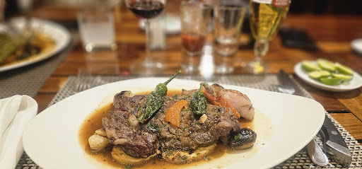 Particularmente en esta ocasión, pedimos de plato fuerte pecho de res en su jugo. Con responsabilidad les recomiendo no pedirlo, supuestamente el pecho estaba bañado en una reducción de vino tino y no tenía el sabor de una reducción propiamente. El plato no es económico, por ello, lo mínimo a esperar es que sea magnífico. Deben saber que la carne de res no estaba sazonada ni siquiera con lo mínimo, algún irresponsable en cocina quizá creyó que su reducción sería más que suficiente. Nadie contaba con que esa supuesta reducción de vino tinto no supiera al producto como tal. ¡No sabía a nada!, ni la carne o la presunta reducción de ese algo que no era vino tinto.