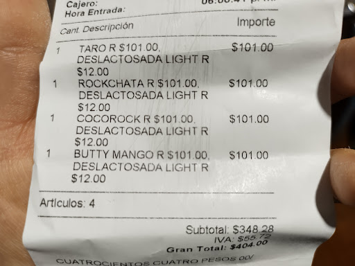 El servicio fue bastante bueno, un poco confuso y también por mi parte porque era la primera vez que pedía una bebida con tapioca, pero la chica tuvo la paciencia y fue muy agradable. Lo malo fue que el encargado de hacer las bebidas, en la última que pedí 4 (Butty mango), la hizo con agua, cuando en todas las pedí con Leche deslactosada (otra cosa que no me dijeron era que es deslactosada Light y no solamente deslactosada), lamentablemente por las prisas que tenía de 10 de mayo, no pude tomarle foto cuando la recibí o cuando tome la bebida, ya que pensé que así debería verse cuando me dijeron que todas las otras se ven con leche excepto la mía que la bebida se veía transparente, por lo que pienso que solo la hicieron con agua, y luego a ver imágenes, no se veía igual. La segunda foto es solo de referencia en el apartado de tipo de Leche.