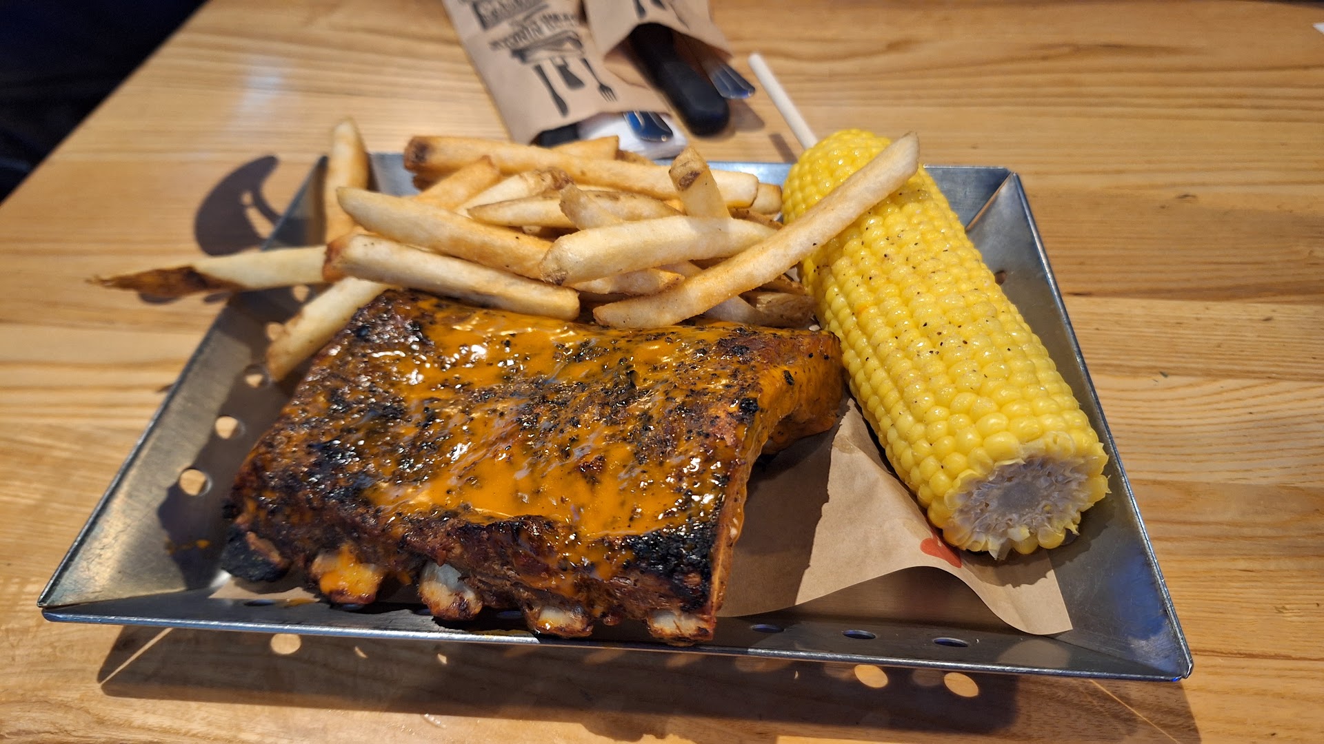 El Costillar "Choice Baby Back Ribs" con salsa original de la casa. Esta en su punto, me recuerda el porque visitabamos en Familia este restaurante. La vista en la terraza del horizonte es única en Lomas Verdes, con las nubes antes de la lluvia.