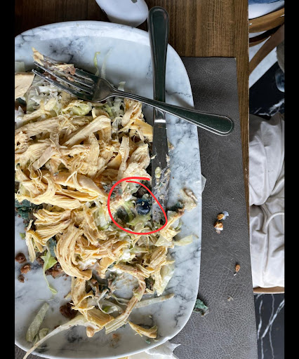 El día de ayer mi hija de 13 años pidió un huarache de pollo en el restaurante Canarios Satélite, y mientras comía, me preguntó: "Mamá, ¿qué es esto?". Para mi sorpresa, era una canica azul dentro de su platillo. ¡No podía creer lo que estaba viendo!