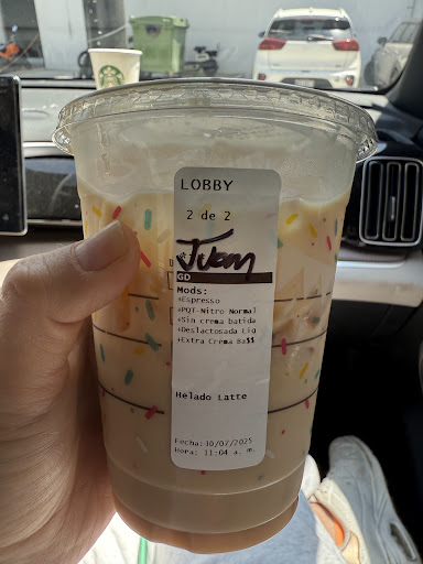 Read moreLa verdad, empecé a ir ahí porque casi no lo veía pero fui un día y me recibieron con una sonrisa y con alegría, me sentí muy bien, ese día entré y ya me estaba diciendo bienvenido con una sonrisa que casi en ningún Starbucks hacen. En tema de calidad de bebidas y alimentos, les quedó delicioso lo disfruté. Siempre son atentos a lo que necesitas, si una sirenita, una bolsa, o qué tipo de tapa, de igual manera siempre te sonríen y te hablan con amabilidad. Ya he ido en diferentes ocasiones y en diferentes horas, y siempre es lo mismo. Aunque si puedo decir que cuando no hay casi gente si te entregan tu bebida inmediatamente, pero cuando hay ya varias personas puede que se...