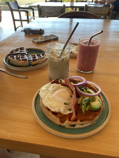 This place really puts the service and love into everything they do. We had a big group and we're lucky to have all our meals served by Santiago and his team. Everything we had and I mean everything was so delicious and healthful. The natural flavored waters and their coffee ☕ don't make my mistake and only buy one coffee bag. I wish I had purchase many more, for me and for gifts. The food!!! Everything from the waffles with delicious fruit and toppings, to the chilaquiles, smoothie bowl, tuna steak, fish tacos, the poke bowl, that was the best poke bowl I've ever had. They had vegetarian and we're able to also make vegan options. The day we had ceviche they made a lentils ceviche, I had more of that than the regular. 💜 Now again we had a special group so we had dinners too. They really out did themselves. Plus they views!!!! The hammocks also they have a beautiful space where we had yoga then zumba and a workshop. I miss it already. Every person working the Cafe was always smiling and super friendly. Highly recommend it...