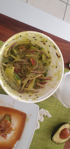 Llegamos y pedimos para llevar agua chile negro y Tuna reyna. El agua chile bueno pero nada del otro mundo. El tuna si estaba muy rico. Tardado hacen las cosas al momento y pues si se tarda y más si tienen pedidos. Balance entre proteína y verdura no hay tanto mi aguachile como el tuna traían super poca proteína, el aguachile traía tercios o medio de camarón ni siquiera los camaranes completos si acaso uno o dos, igual el tuna ahí hay que andarle buscando. Y por los precios pues si podrían ponerle un poco más. $250 el litro de tuna y 180 el aguachile. Si, como dicen otros comentarios en el área se levanta mucho el polvo y creo que una gran área de oportunidad es que las chicas podrían traer el cabello totalmente recogido por que solo una así lo traía a las demás les volaban todos los cabellos mientras preparaban la comida detrás de la barra. Un poco más de cuidado en...