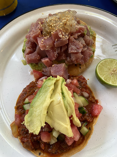The guacamole was delicious, so was the salsas. I ordered a tuna tostada and the tuna was not fresh. It was stinky and abut brown in some pieces. I also got a Marlín tostada and it was ok. Not as fresh as I would have thought. I do not recommend this place, bad service and some food is not...