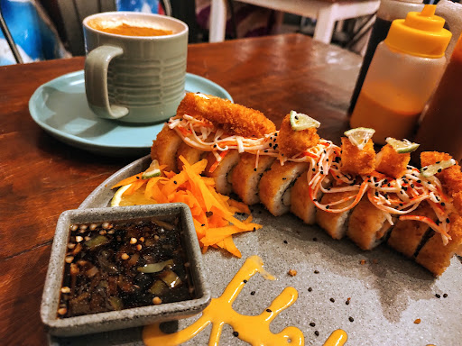 Read moreFuimos en dos ocasiones a este restaurante. Lo recomiendo, la relación calidad y precio está muy bien!! No venden alcohol, ( pero nosotros llegamos con cervecita que habíamos comprado en el Oxxo y no tuvieron drama en dejarnos tomarlas) Los rolls se sushi que pedidos valían $80/$90/$105 La siguiente noche volvimos por la pizza, ya que vimos a la mesa de al lado que tenía buena pinta. Más fina y muy sabrosa, pedimos vegetariana tamaño familiar y...