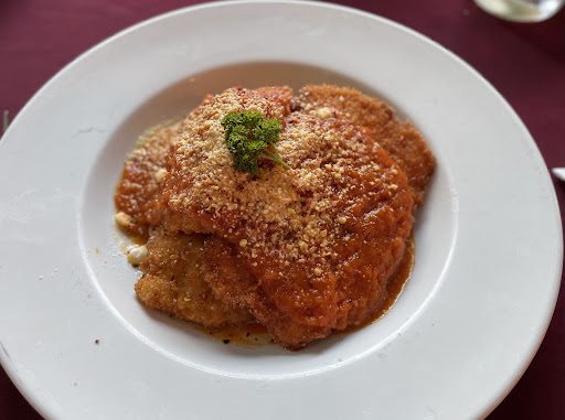 Dinner here tonight ; fettuccine Alfredo with mushrooms for my wife. I had the chicken parmigiana. Generous servings and excellent quality. Quite busy, so I would recommend a reservation. Efficient and friendly staff. A guitarist provided entertainment. You can eat inside or outside as desired. Two margaritas, two glasses of red wine as...