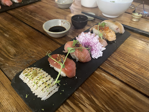 What to expect: starter dish (ours was a cucumber seaweed salad with local fish) 7 piece nigiri (local fish, tuna, lobster) (the toro!!! 😍) 1 large roll to share