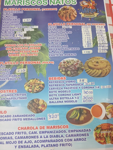 El lugar está muy feo, honestamente no tiene apariencia de restaurante familiar, más bien parece una cantina e incluso está a un lado de un depósito donde no dejan de llegar borrachos a comprar bebida. La comida es regular, no es completamente mala pero no vale la pena ir a Santiago a comer en ese restaurante, hay muchos mejores restaurantes en Tepic y más baratos, que por cierto como pueden ver en el menú, sus platos son de precios iguales o superiores a restaurantes conocidos de Tepic....