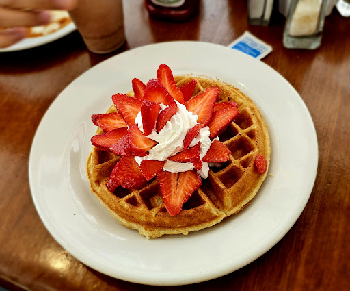 Read moreCan be very busy in the morning, but we were seated right away after arriving at about 11;30. There is a large covered outdoor area, but we sat in the pleasant and sunny indoor dining room. Service was friendly and efficient. Although there was a fairly long wait for the food to come out everything came out steaming hot and fresh. It was worth the wait! Two of us had the excellent french toast... the Tuscany which comes with marscapone and loads of fresh fruit, and a version that came with fried eggs and breakfast sausage. Another one of us ordered the waffles with strawberries with whipped cream. In every case be prepared for huge servings! Two of us went for lunch options, and the big surprise was how good those were. My wife ordered the green enchiladas with chicken and declared them the best Mexican food so far on this trip. Another of us ordered the beef enchilada which was equally good. Coffee was excellent and juices were fresh and tasty. Overall, it's hard to believe there could be a better breakfast or lunch spot in...