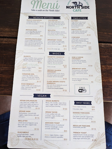 Read moreWe were happy to find vegan options. My husband ordered the vegan hash and I the vegan burrito. They were both quite bland, but in spite of that we would have considered going back because of the vegan options. UNTIL we got the bill. Just two of us, but 18% gratuity added to the bill. We are good tippers, so that was offensive. We decided not to challenge it, but had to forcefully request our change. A matter of a few pesos, but having already paid an additional 18%, it was a matter of principle. Over 600 pesos for 2 dishes and 2 margaritas. Shortly after, we found a place on the beach that served us larger (and boozier) margaritas for 70 pesos, vs the 150 that Northside charged us. Which made us aware of how tourist-priced Northside had been. We just want to be charged fairly, so based on our experience, we...