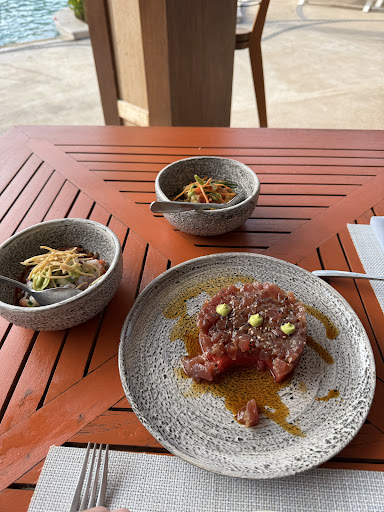 Located in the center of the pool area. Outside seating mostly in the shade. Ordered a few different things we shared among 2 of us. Perfect cold dishes to enjoy in the heat.