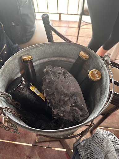 Las bebidas se sirven como jarra o individual, tal cual la naranjada de la imagen. También hay surtido de cerveza nacional a buen precio.