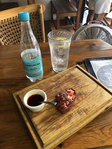We arrived just as the sky turned into a watercolor painting, soft strokes of pink and tangerine melting into the ocean beyond. Santa Iguanas, tucked away in a corner of this vibrant coastal town, felt like a secret waiting to be discovered. The glow of string lights danced above us, casting a golden hue over rustic wooden tables, as the sounds of laughter, music, and crashing waves intertwined in the air. From the moment we stepped in, Sara made us feel as though we were old friends returning to a favorite place, even though it was our first visit.