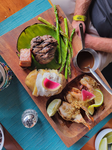 Read moreThe location of this Blue Shrimp is nestled against the river with plenty of birds and other animals to catch a glimpse of. The water is a bit murky but it's still nice to be next too enjoying your food. We went with a group of 7 of us and got 1 of 2 of the tables that goes kind of out onto the water and is covered. It was really nice and had a fan to keep us cool in the humidity. The food was pretty good. None of us were too crazy about the Calamari or fried shrimp, they seemed to be something I could pull out of the freezer that I would get a huge portion from Costco. These weren't something we would order again. My husband got this entire fish đ filet that was incredible and I got 2 Blue Shrimp with 2 lobster đŚ tails. Absolutely excellent. The friend sitting next to me got the fish of the day, mahi mahi, now the fish was prepared excellently, it was the portion that was ridiculously small, especially for the price...even in pesos. Our other friends got the ceviche and seafood pasta and they seemed to enjoy. We went for desert and had chocolate lava cake with ice cream, key lime pie, and flan. Everyone enjoyed their deserts very much. Especially that lava cake, it was cooked to perfection with the warm chocolate oozing out as you cut into it yummy đ¤¤đ So overall we will be back. This was for lunch and we want to try a nice date night dinner here next with the riverd side view and the beautiful ambiance....