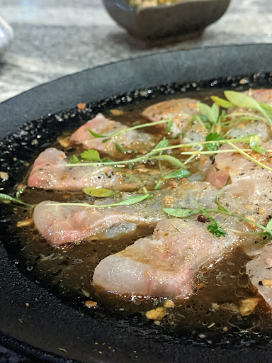 👉 The carpaccio was drenched in a salty soup, this makes the fish taste cheap.