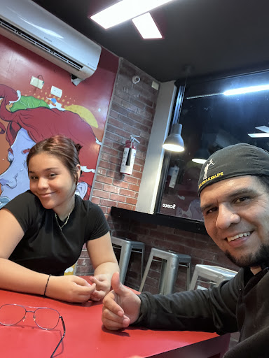 Read moreImagínate tener mucha hambrita, ver las imágenes que comparte la página y recibir una hamburguesa nada que ver con la imágen pfff. Pedí la Madrileña, el pan está rico y las verduras frescas, la pechuga de pollo suuuper pequeña y reseca, no sé si era de ayer o se les pasó en la freidora. Hace un año pedía mínimo 2 veces a la semana de este lugar, no sé que cambió y hoy meses después me animé a pedir de nuevo y neta, ya no vuelvo (si acaso por la nieve de yogurth , esa sí está rica). Ah, y la comida no es muy costosa pero tampoco económica, hay mejores restaurantes aquí mismo en la Azteca con calidad...