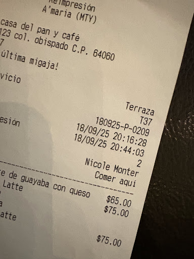 Read moreContaré mi experiencia, voy muy seguido porque la verdad estoy enamorada del pan, está riquísimo, he ido tantas veces que las últimas 4 veces me arrepiento de darle nuevamente una oportunidad más, PÉSIMO SERVICIO QUE TIENEN LOS MESEROS, llegué 8pm me dieron una mesa sucia, me atendieron hasta las 8:15 y porque les levantamos la mano, ósea ni siquiera nos recibieron, para antes de eso me había levantado a tomarle foto al pan que quería que es mi favorito, inmediatamente le dije a la mesera quiero ese pan y es el único que queda, pues pereció que me ignoró y le valió totalmente porque dijo okey, lo apunto y equis, pasaron dos mesas después de que llegamos nosotros, atendió a la segunda mesa que llego después que nosotros y le llevaron el pan que yo le había pedido como 8-10 minutos antes, era la única pieza que quedaba, la verdad llevaba días queriendo ir, fui hoy por ese pan justo, cuando observé que se lo dieron a la otra mesas después me moleste porque lo había pedido primero, el punto no es ese en si, el punto es que ya van tres veces que me atiende LAMENTABLEMENTE esa misma mesera que tiene una jeta que parece que hace un favor, en vez de atendernos bien, se tardó muchísimos las bebidas, nadie se acercaba a la mesa, nos atendieron dos meseros más porque nuestra mesera ni se acercaba (los otros dos meseros muy amables) Pero ella ni sus luces y tenía una cara, pésimo servicio, la vdd es que como es mi pan favorito preferiré ya solo comprar para llevar, porque la vdd no vale la pena seguir yendo hacer corajes, ni a que me traten así, es la tercera queja que hago ya hice una por redes y pues sigue igual, la verdad que pésimo que uno va por la experiencia y a pasarla bien y te den ese servicio y tampoco hay un jefe, capitán, gerente o algo que se de cuenta de este tipo de detalles, ni los corrijan, de verdad espero pongan más atención en su personal, capaciten y tengan mejores modos para atender a la gente. También lo cuento porque me dedico a los restaurante y estoy enamorada del servicio pero esto es una decepción, lástima que lo que cocinan, lo que preparan de bebidas y el pan esté tan riquísimo para el servicio que dan. También pedí unos tacos de barbacoa que insisto la comida y todo está muy rico, muy llenadores, el chai riquísimo y un pan que pidió mi esposo, la vdd con eso no...