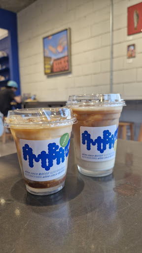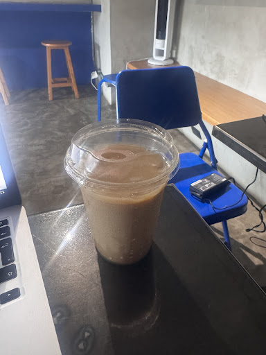 Una cafeteria muy bonita con colores lindos, ya que destaca mucho en el local el color azul que se ve precioso. Es un lugar chico pero mi novio y yo alcanzamos lugar en mesa aunque también hay una barra. Pedimos un latte frio, un dirty matcha que también trae cafe, un croissant almendrado y un rol de canela que estaba enorme y con buena cantidad de glaseado, TODO estaba suuuper rico. Esta cafeteria tiene todo por que es muy bonita, tiene sabores muy buenos y la atención también es buena, fuimos un domingo y los trabajadores se comportaron muy amables, sin duda volvería a venir 💙 Por lo mismo de que es un local chico recomiendo que vengan en pareja o...