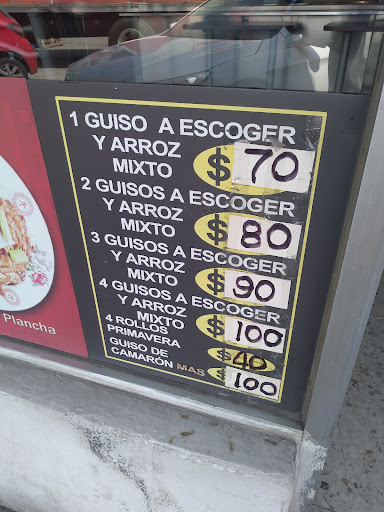 Pésimo, pésimo, pésimo, no se si tuve mala suerte, no se si el hombre que atendía estaba teniendo un mal día pero cuando le pedí un guiso se equivoco y cuando se lo dije me ignoro aun cuando se lo volví a repetir, lo deje pasar pensando que no hablaba español, le pedí un tenedor extra más tarde y literalmente me lo aventó desde la caja a través del vidrio divisorio sin siquiera verme a los ojos, las dos personas haciendo fila me voltearon a ver y ellas me pasaron el tenedor, todos nos sacamos de onda, nos miraba mientras comíamos a mi novia y a mi y pienso que le molestó qué compraríamos un solo plato para los dos, su cocina se ve muy sucia y su bote de basura esta asqueroso, lo peor fue qué en mi comida había un pedazo crudo, lo mordí y exprimido un liquido qué espero no sea sangre en mi boca, super amsrog y se sabor horrible, estaba demasiado duro también, fue entonces que deje de comer y me fui, todo esto en una sola vez que decidí ir a probar ese restaurante, yo no entiendo si hice algo mal pero el servicio fue muy demasiado sucio y con los insumos en el suelo en cajas y bolsas al lado de las mesas, además de que no es barato para lo que sirven qué me pareció poco por cien pesos en términos de comida china o y el restaurante...