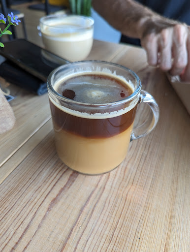 Read moreBuen lugar para un cafecito. La atención es muy buena, los baristas siempre han sido buena onda, igualmente el encargado. Los conocí por el pasaporte del café y sí he regresado 🤭. El café está rico, el precio es casi igual que todos los cafés de especialidad. Hoy probé los chilaquiles y la salsita verde estaba rica, un poquito acidita lo cual le da un sabor diferente a los chilaquiles. Siempre está muy tranquilo, por lo que está agradable como espacio para trabajar con tu café, pero no para tanto tiempo pues las sillas no son para estar más de una hr... Creo que no son pet friendly en sí, pero me han permitido estar con mi perro...
