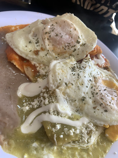 Pedimos el combo suizakiles y chilakiles brunch. Delicioso, el queso derretido y una buena porción de pollo en las enchiladas qué no estaban desnutridas! Estaban bien llenas de pollo, pura pechuguita super rica. La porción "mini" de chilaquiles se me hizo muy acorde y la verdad me esperaba menos, pero estaba super super rico en verdad; los totopos bien grandotes 🫢 Los de chilakiles en salsa roja estaban bien sabrosos también, aunque hubiese preferido con buebito pero fue gusto de mi novio 🫣 Creo tienen a mi gusto a mejorar los frijoles pero creo es cuestión de gustos nomás.