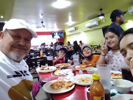 Primera vez que fui por el Buffet que anuncian en la entrada con una imagen de pizza y la verdad no son su fuerte, se termina muy rápido la pizza, y ni sabe bien jaja parece que utilizan de lo más económico en cuanto a ingredientes y sabe muy mal para mi gusto, demasiado tomate y parece puré de tomate, el queso no usan ni mozzarella, ni manchego, utilizan creo que Chihuahua, si no me equivoco, pero mozzarella no es. Se espera que tengan espagueti, papas y otros complementos de comida rápida para un buffet de pizza pero esta raro ya que tienen más comidas tipo caseras, no las probé, un amigo probó unas papas con carne y dijo que estaba muy fea la carne y la verdad se veía poco apetitosa, solo las papas se veían bien doradas y algunas. Excelente atención del mesero pero es opacado por la mal sensación de gastar tu dinero en algo que no te gustó. Se veía rica la naranja y la sandia aunque no la probé. Tenían jochos normales, a mi sí me gustan así. Sacan tres pizzas cada 20 minutos o sea 24 piezas y si esta lleno ni de chiste alcanzas, tienes que andar peleando el lugar en la fila (formarte rápido) y si esperas te arriesgas a esperar por nada jaja, mejor no vayan si van por pizza, hay mejores lugares, lo pueden probar quizás les guste...