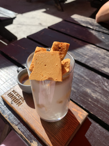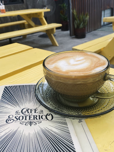 Café Esotérico. One of the most aesthetic coffee places I’ve been in a while. The place is very well put together, the energy in the space feels unique and very fresh. The people greet you and are happy to help you. This time ordered chilaquiles verdes, in my chilaquil rating sacle I’d give it a 7, the crunch was remarkably pleasing, the flavor tho, lakes flavor but overall good chilaquiles. On the other hand the Toffee Latte which which they told me that and the Strawberry Matcha are the most sold brews was delicious. The amount of toffee they gave me in top was odd and a very good sign of a quality place. Good vibes all around, the waiter was very friendly and the service decent. Definitely recommend to go during lunch or even better during the afternoon and spend the night. Café Esotérico is located in Metapatio, a conjunction of different businesses selling beer and other food. The music was also very good. Good prices too 🕺🏼 go to Cafe esotérico if you want to spend time in a very fresh and...