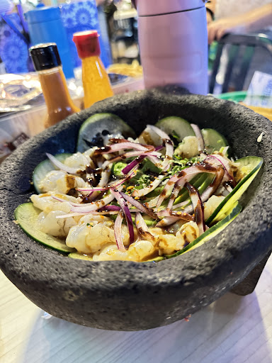 Ideal para ir con amigos y/o pareja. La comida no es cara aunque tampoco barata, lo cual me parece bastante bien pues es un restaurante de mariscos. Los tacos y tostadas son algo costosos (aprox $50-$60 por taco) pero estan muy bien servidos y para una persona de ingesta regular, ocuparías máximo 4 para llenar, mis favoritos son el taco gobernador, el taco de pulpo al pastor y la tostada de marlin. Sus cocteles no son los más ricos, me parecieron demasiado "frescos", con poco sabor y con demasiada cebolla (me gusta mucho la cebolla pero no cuando su sabor es más fuerte que el sabor del plato en si). Su aderezo de chipotle cremoso es buenísimo para acompañar todas las comidas. Los platos de filetes y camarones estan muy bien servidos y su costo no es elevado (aprox $170 por platillo) y siempre los acompañan de papas y arroz. Los meseros son amables y nunca he tenido sorpresas desagradables, siempre me han tratado muy bien. Si te gusta la música en vivo, tienen una zona exterior donde por las noches tocan algunos grupos de música regional (banda y norteño), sin embargo, para mi gusto es demasiado el ruido ya que el lugar no es tan grande y definitivamente no hay espacio para bailar. Si lo tuyo no es el ruido, puedes pedir una mesa en la zona interior del lugar. Eso si !, los fines de semana y por la noche, el lugar se empieza a llenar mucho y posiblemente tendrás que esperar algunos turnos para ingresar. Lo recomiendo mucho por su sabor y por sus precios accesibles (no económico)......