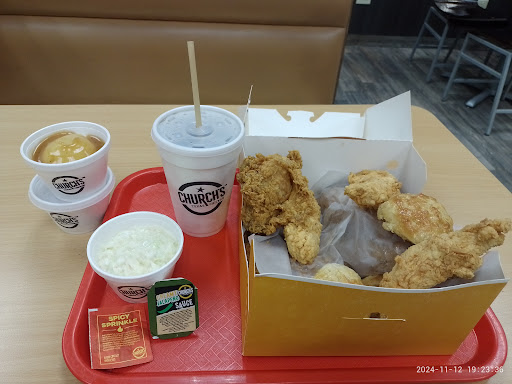 Read moreEn Church’s siempre te atienden al cien, la raza es bien amable y rápida pa' despachar. Desde que llegas se nota la limpieza del lugar, todo bien ordenadito y con una higiene que da gusto. La comida, como siempre, con ese sabor chingón que ya conocemos, bien servida y calientita. Los pollos están jugosos y las piezas bien doraditas, como nos gusta acá. Lo mejor es que no batallas, te atienden volando, y eso se agradece cuando andas con hambre o con prisa. Los precios están bien accesibles pa’ lo que ofrecen, no andan abusando. La neta, da gusto encontrar lugares así, donde se nota que hacen las cosas bien y con cariño pa’ la gente. Church’s sigue siendo de esos lugares donde sabes que no te vas a arrepentir. Si andas por la zona y quieres comer rico, rápido y sin gastar de más, date la vuelta, no...
