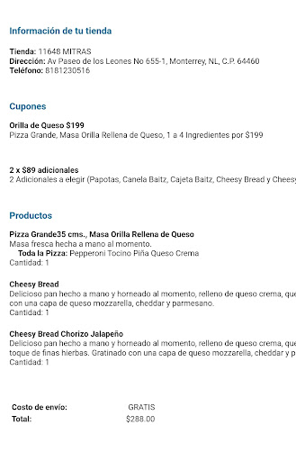 Read moreEs una sucursal pequeña, la pizza dominos es buena en su sabor comercial, no suele fallar, así que el producto en si bastante rico y este caso, no fue la excepción.
