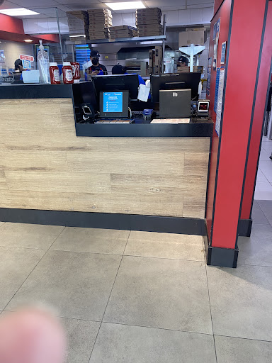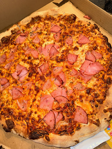 [2024.04.05]Traté de pedir desde la página de Domino's y fue un infierno, de modo que opté por pasar por la pizza personalmente. A la mera hora, mi esposa estaba por la zona y la invité a comer ahí mismo. Pedimos una pizza grande de peperonni con champiñones (les debo la foto!), en masa "crujiente" (la más delgadita que manejan). Nos sorprendió que el lugar estaba muy frío, y al preguntar a la señorita qué zona estaría menos frío me confesó que toda el área de comedor estaba así, muy fría. Esperamos nuestra pizza y estabamos charlando cuestiones laborales, pero tenían el televisor con videos musicales a muy alto volumen... Revisé si el aparato tenía panel de control para bajar el volumen, pero no encontré nada. Le pregunté a la señorita si podría bajar el volumen, y me fuí a sentar. Unos minutos después fuí a darle seguimiento a mi solicitud, pero la señorita me dijo que no se podía. Insinué que podría desconectarla, ya que resultaba molesto el volúmen del audio, y lo reportó con su Gerente, quien "amablemente" me explicó que no tenían controles de televisión ni del clima, que para hacer algún ajuste tendría que solicitarlo a Mantenimiento... Y obvio, eso no sería de inmediato. Sobre la comida, bien... Yo prefiero la masa mas gruesa, pero hoy tocó delgadita. La pizza, caliente, como debe ser, aunque había secciones que no estaban bien cortadas. Ojo que tienen pocos lugares de estacionamiento, yo conté 3 cajones al frente y otros 3 o 4...