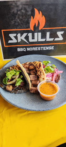 Si buscas los tacos de picaña ahumada más sabrosos, Skulls BBQ es obligatorio. ¡El "Aprendiz del Fuego" y Don Picaña son una combinación...