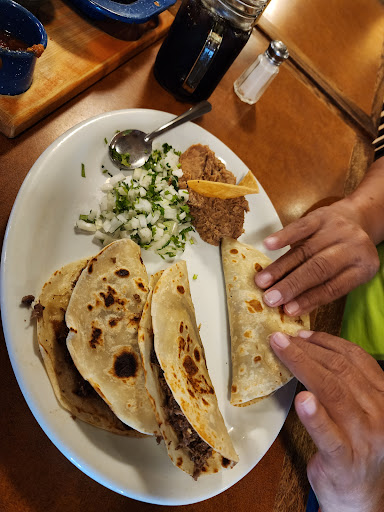 La comida estaba bien de sabor aunque las porciones son más de disfrute que para saciar. No tenía guarniciones y -literal- venían cuatro tortillas taqueras y tres salsas, dos de la misma, al parecer para llenar el...