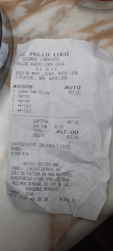 Read moreEl pollo muy rico como siempre, igual al de la vieja sucursal ubicada metros atrás, pero no puede ser posible que para los precios que manejan no te puedan dar más que unas pocas mal servidas salsas y totopos, no te preguntan u ofrecen cebolla, chiles u algo más, tampoco hay una isla para agregar complementos como anteriormente había, he notado esto en muchos establecimientos de El pollo loco y no en todos de buena manera te dan algo extra, si no lo quieren dar como un "valor agregado" al menos que le pongan un precio el cual esté dentro del rango y no descabellado como suelen hacer. Suelo comprar en varias ocasiones al mes... Y claro que es notorio el cambio de servicio de...