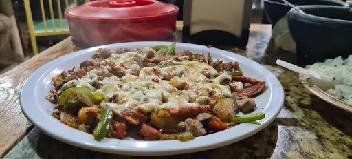 La comida no tarda mucho, la preparan al instante 👍👍👍y tiene un sabor normal y sibretodo si quita el hambre👌, lo que me gusta esque tienen algunas especialidades como por ejemplo bistec con champiñon, de echo lo pedi ( por la proteina jiji) y sabia bien , mi pareja pidio alambre con piña, otra especialidad, y habia otras combinaciones mas que no recuerdo bien pero se escuchaban interesantes, nos trajeron un tortillero con tortillas tanto de harina como de maíz, las salsas a mi parecer sabian mal y los limones rancios, de tomar tienen sodas y algunas aguas de sabor, pero no ne gustaron, pedi horchata y sabia a tang , Francamente la comida salvo el resto de los otros detalles.